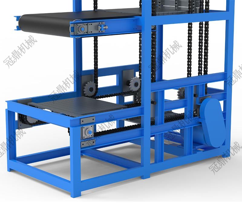 進出口同側多進多出實現物料垂直輸送:物料從同側多個入口進入托盤或料斗,由鏈條帶動垂直升降;到達目標樓層后,通過卸料裝置自動排出;空載托盤在回程中無需翻轉或停頓,直接返回起始點,形成不間斷作業(yè)