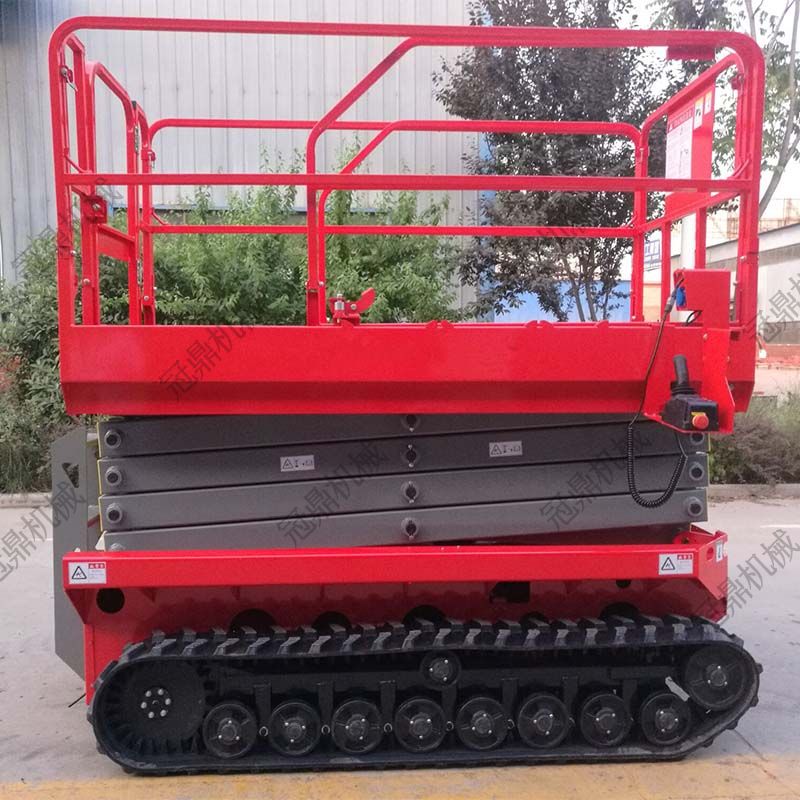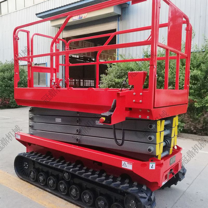 履帶式液壓升降平臺(tái)采用加重底盤(pán),工作時(shí),不需要支腿,在升降機(jī)升起后,不需要不把升降機(jī)收起即可行走,極大的提高了工作效率,同時(shí),它的履帶式車(chē)輪,增加了與大地接觸的面積,在野外泥濘道路上也可行走和工作,是石油勘探、野站部隊(duì)通信線路安裝施工等野外高空作業(yè)的理想設(shè)備。
