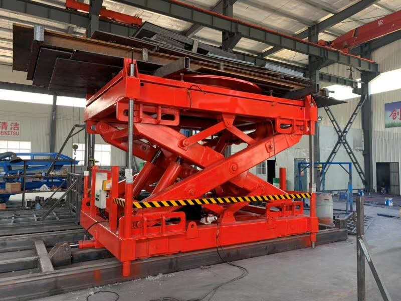 后翻式卸車機(jī)是一種高效裝卸設(shè)備,通過(guò)夾緊裝置將整車固定在平臺(tái)上,啟動(dòng)傾斜裝置后將卡車整體抬高至45°的傾斜角度,利用貨物重力自然