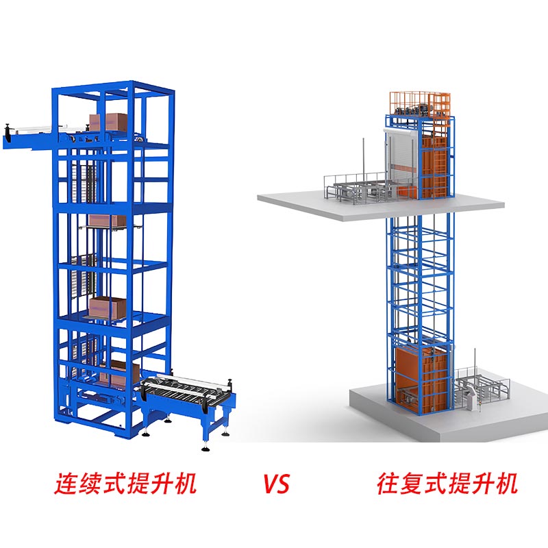 連續(xù)式提升機(jī)和往復(fù)式提升機(jī)是自動(dòng)化物流系統(tǒng)中常見的垂直輸送設(shè)備,但它們在結(jié)構(gòu)、效率、適用場景等方面存在顯著差異。本文將從多個(gè)維度進(jìn)